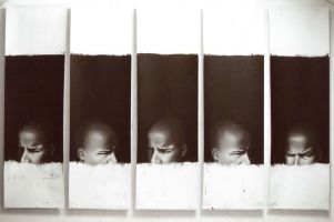 Ohne Titel, 2000, Acryl auf Baumwollsreifen, 5 Streifen, 60x150 cm -